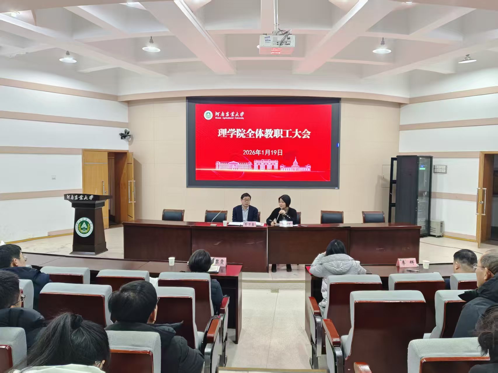 本网讯(通讯员 李晓)为全面总结2025年各项工作,部署2026年重点任务,进一步统一思想、凝聚共识,1月19日,永利博彩在文化路校区300人报告厅召开全体教职工大会。院领导班子以及全体教职工参会。会议由院党委书记王照兰主持。