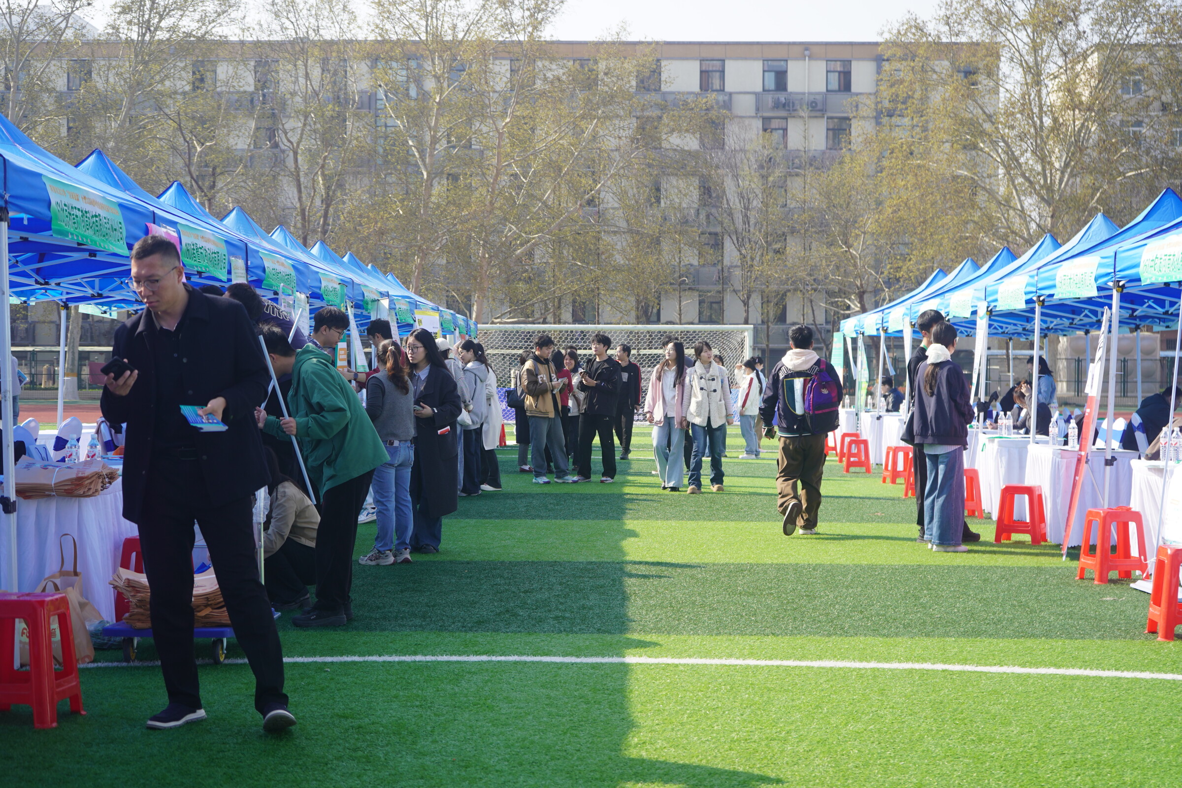 本网讯(通讯员 卢纯 王冰怡) 3月27日上午,2026届“豫荐未来,青春启航”毕业生春季双选会在文化路校区田径场举行。本次活动邀请内蒙古伊利实业集团股份有限公司金山分公司、郑州郑氏化工产品有限公司、北京学而思教育科技有限公司郑东新区分公司、山东滨农科技有限公司等34家省内外各类优质企业参会,吸引2026届毕业生及往届未就业毕业生到场求职。