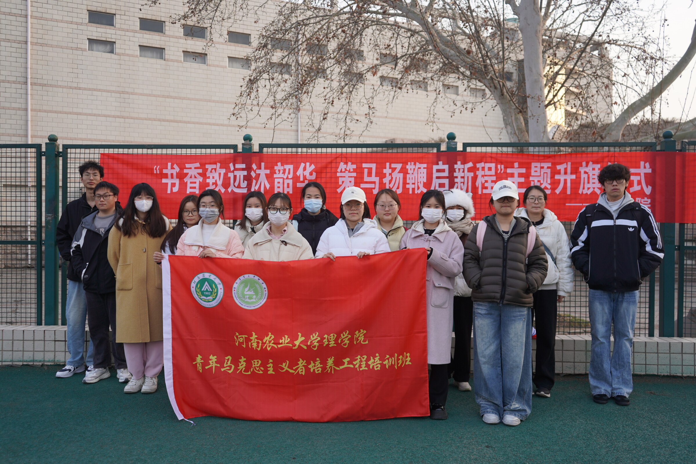 晨光映衬下,五星红旗冉冉升起,全体师生肃立行注目礼,齐唱国歌。学生代表李聆瑜结合《习近平与大学生朋友们》一书分享学习感悟,号召同学们以书为炬,勤学善思、知行合一,在笃学笃行中融入时代需求,努力成为堪当重任的时代新人。永利博彩党委副书记黄婉珺在讲话中对全院师生提出三点期望:希望学子以“书香润心”为源,既要明理增信,更要树立大志,在深读细悟中汲取真理力量;勉励同学们以“实践立身”为行,既要学以致用,更要知行合一,在服务大局中锤炼过硬本领;号召教师以“育人为本”为魂,既要带头读书,更要融入思政,在言传身教中引领青年成长为有理想、敢担当、能吃苦、肯奋斗的新时代英才。仪式结束后青马班成员合影留念。